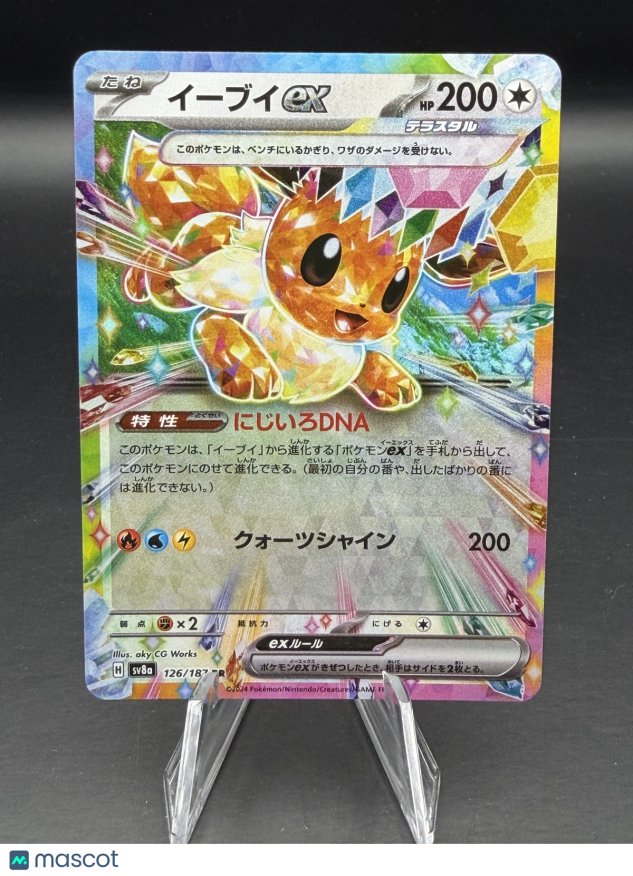 You are purchasing a Pokemon 2024 sv8a: Terastal Festival EX Eevee EX Double Rare #126/187 - Near Mint or Better. You will receive the exact item in the photographs. Thank you for looking.(Cards with multiple quantities under $20 each, will be the same condition, but not necessarily the exact same copy of the card.)
