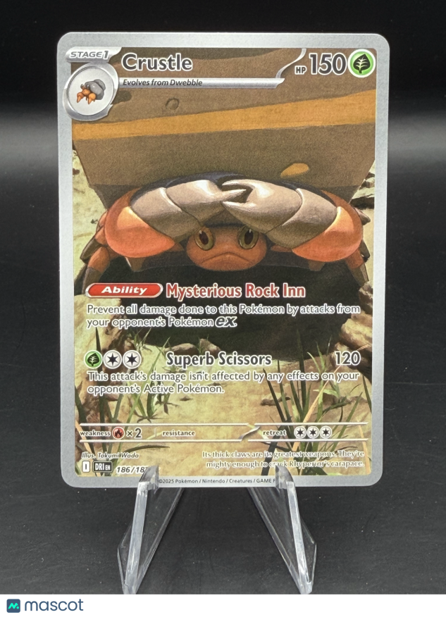 You are purchasing a Pokemon 2025 Destined Rivals Crustle Illustration Rare #186/182 - Near Mint or Better. You will receive the exact item in the photographs. Thank you for looking.(Cards with multiple quantities under $20 each, will be the same condition, but not necessarily the exact same copy of the card.)