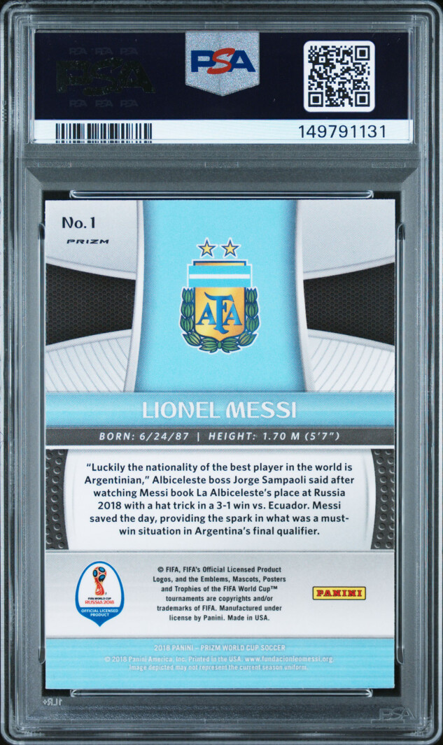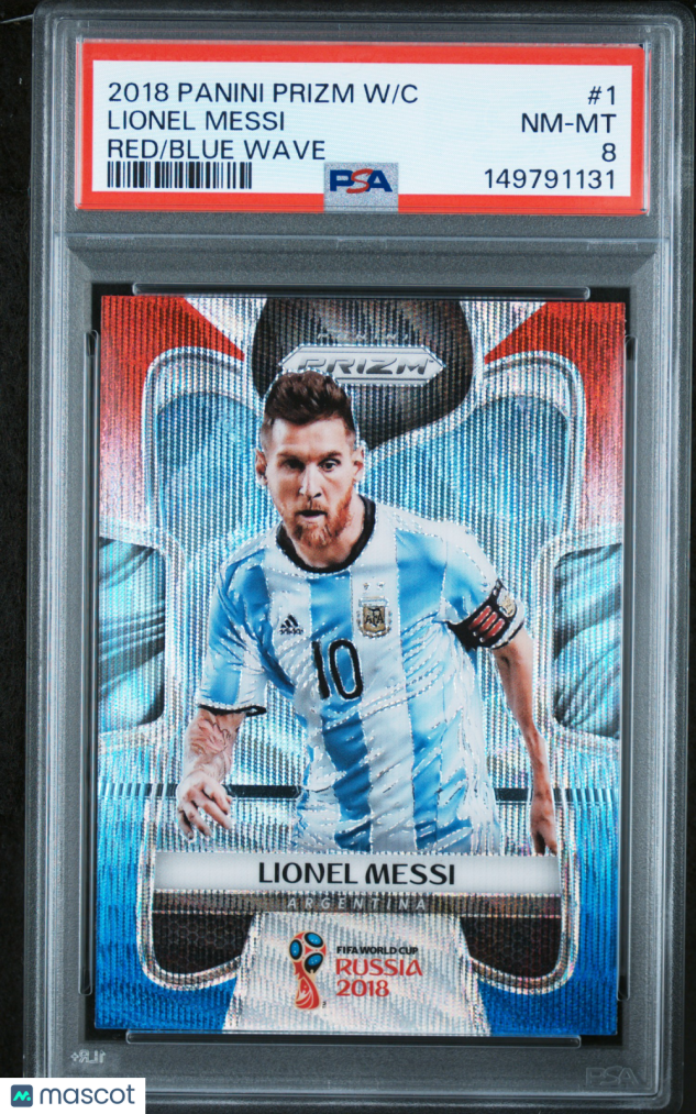You are purchasing a 2018 Panini Prizm World Cup Lionel Messi #1 Red Blue Wave PSA 8. You will receive the exact item in the photographs. Thank you for looking.