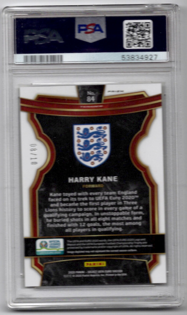 2020 PANINI SELECT UEFA EURO 2020 GOLD REFRACTOR #84 HARRY KANE (08/10) PSA 10 - POP 4