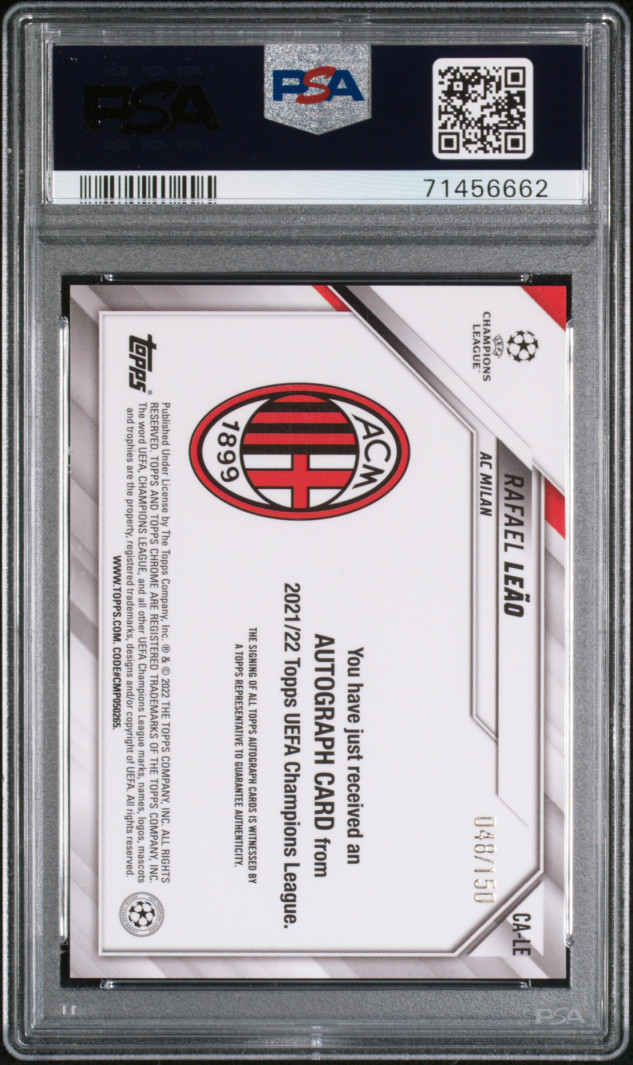 2021 Topps Chrome Uefa Champions League Chrome Autographs Rafael Leao Chrome Auto-Blue Ref.