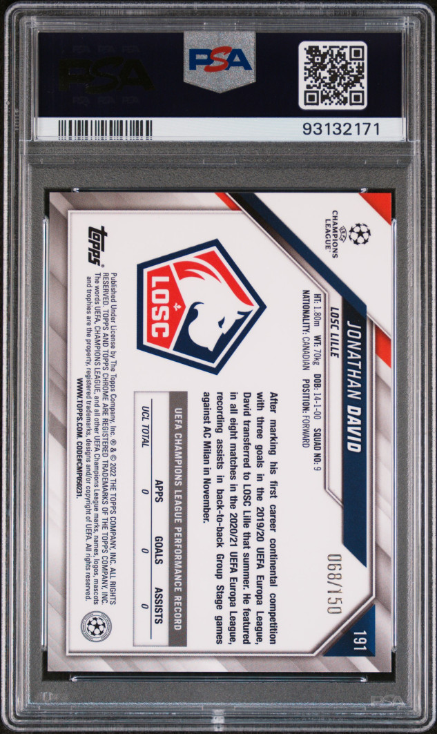 2021 Topps Chrome Uefa Champions League Jonathan David Blue Refractor