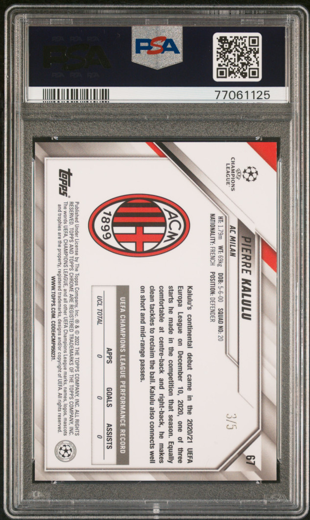 2021 Topps Chrome Uefa Champions League Pierre Kalulu Red Wave Refractor