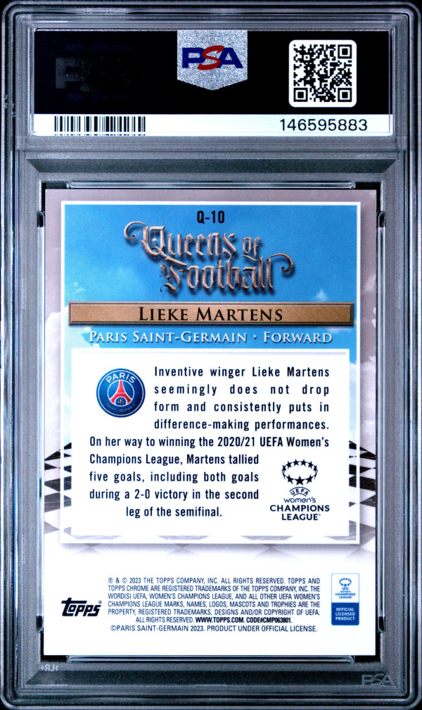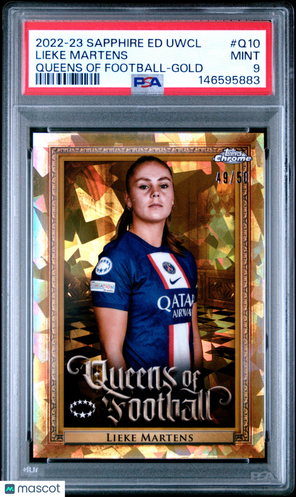 You are purchasing a 2022-23 Topps Chrome Sapphire Edition Queens of Football Lieke Martens #Q10 Gold 49/50 PSA 9. You will receive the exact item in the photographs. Thank you for looking.