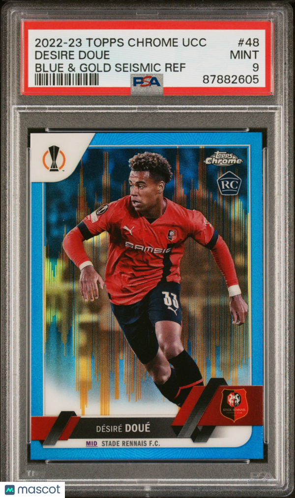 You are purchasing a 2022-23 Topps Chrome UEFA Club Competitions Desire Doue #48 Blue & Gold Seismic Ref PSA 9. You will receive the exact item in the photographs. Thank you for looking.
