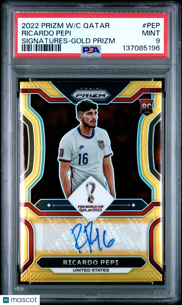 You are purchasing a 2022 Panini Prizm World Cup Qatar Signatures Ricardo Pepi #PEP Gold /10 PSA 9. You will receive the exact item in the photographs. Thank you for looking.