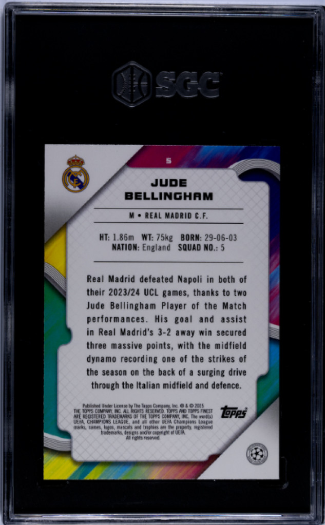 2024-25 Topps Finest Ucc Jude Bellingham Blue Raywave /150 SGC 10
