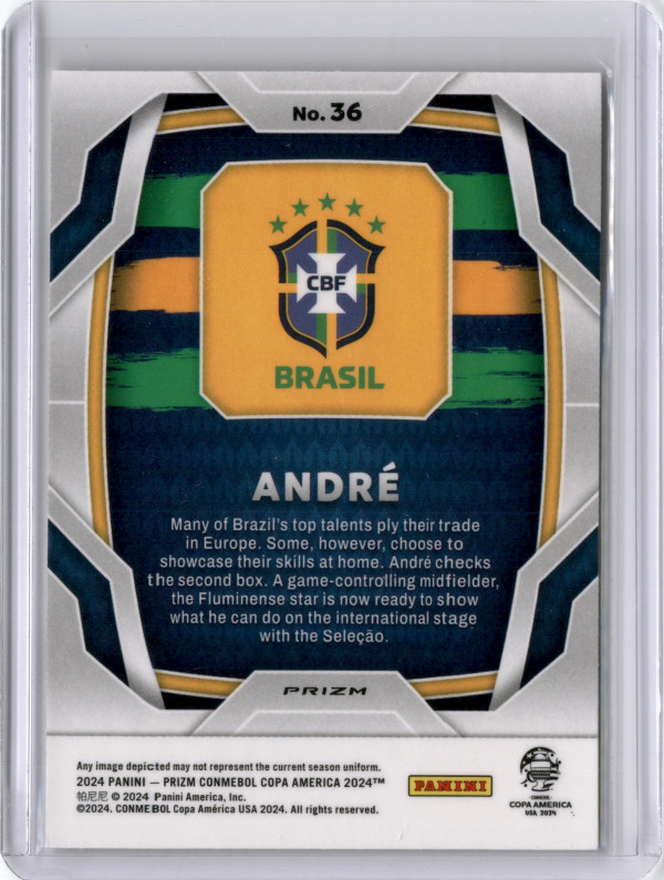 You are purchasing a 2024 PRIZM CONMEBOL ANDRE HYPER PRIZM RC ROOKIE. You will receive the exact item in the photographs. Thank you for looking. Check our SM for news and updates 2Kingscards