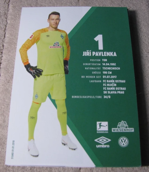 2018-19 SV Werder Bremen (36) Autographed Team Player Cards - Pavlenka Kruse +
