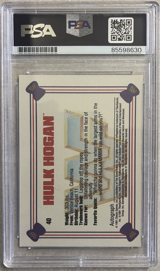 Hulk Hogan Signed 1991 Classic WWF Wrestling #40 PSA Authentic Auto