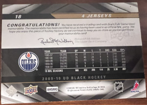 2009-10 Grant Fuhr Upper Deck UD Black #18 4 Jerseys quad patch /99
