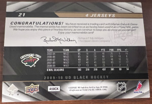 2009-10 Marian Gaborik Upper Deck UD Black #21 4 Jerseys quad patch /99