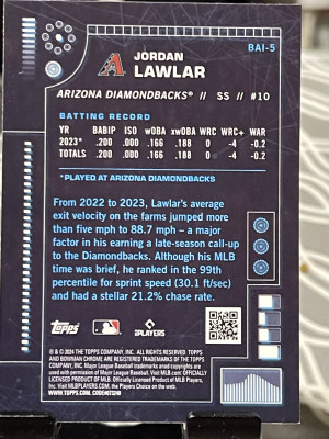 Jordan Lawlar 2024Bowman Chrome Baseball#BAI-5 AI Refractor (RC) Diamondbacks