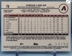 2024 Topps Japan Edition Jordan Lawler Purple /50 RC RARE Arizona Diamondbacks