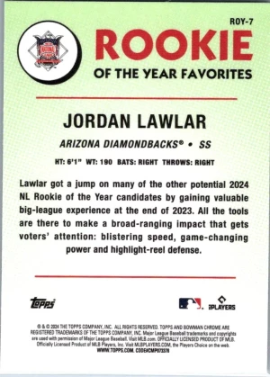 2024 Bowman #ROY-7 Jordan Lawlar Rookie of the Year Favorites Mojo Refractors