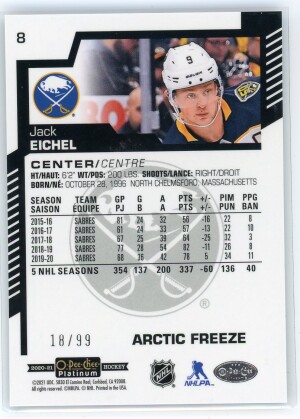 Jack Eichel 2020-21 O-Pee-Chee Platinum #8 Arctic Freeze 18/99