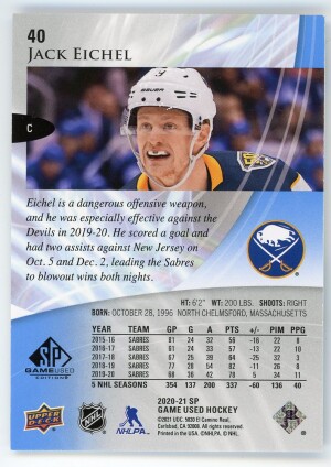 2020-21 SP Game Used #40 Jack Eichel Blue Burst 83/165