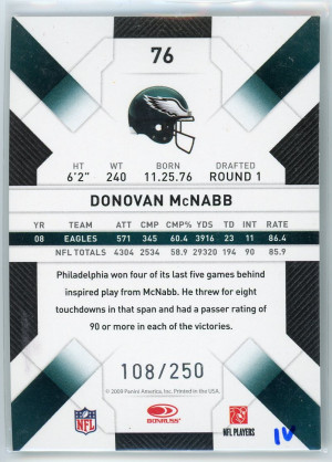 2009 Score #222 Donovan McNabb Scorecard 250/299