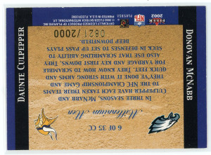 2002 Fleer Tradition #6 Donovan McNabb Daunte Culpepper Classic Combinations 821/2000