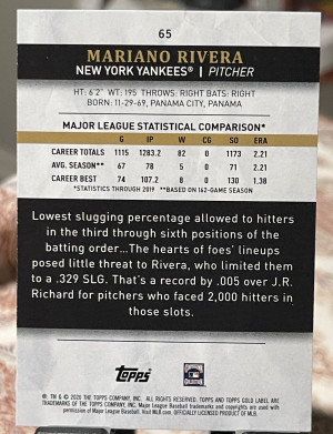 2020 Topps Gold Label MLB Legends Mariano Rivera #MLR-MR Relic HOF 1 of 1 Insert
