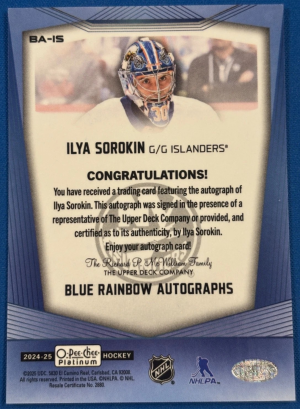 2024-25 OPC Platinum Autographs #BA-IS ILYA SOROKIN AUTO
