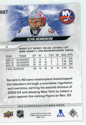 2023-24 Upper Deck #687 Ilya Sorokin Deluxe /250