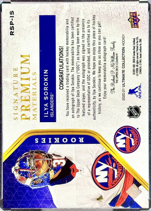 2020 Ultimate Collection Ilya Sorokin Rookie Auto /99