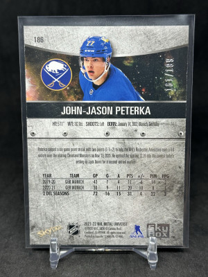 John-Jason Peterka 2021-22 Upper Deck Skybox Metal Universe Purple Spectrum /199 Rookie RC #186