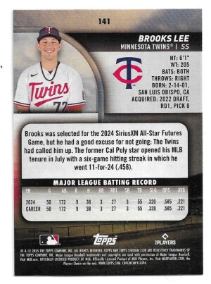 2025 Stadium Club #141 Brooks Lee (RC) - Minnesota Twins