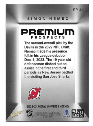 2023-24 Metal Universe SkyBox Premium Prospects #PP41 Simon Nemec (RC) - New Jersey Devils