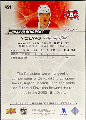 2022 UD Series 2 Juraj Slafkovsky Young Guns