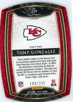 Tony Gonzalez 2020 Select Prizm Copper Die Cut 188/355 #234