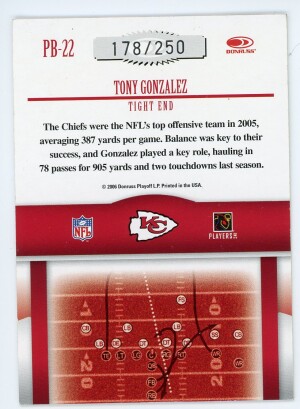 Tony Gonzalez 2006 Donruss Gridiron Gear Playbook J178/250 #PB-22