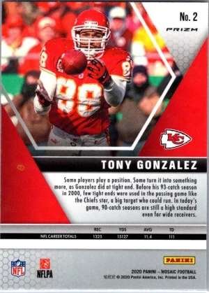 2020 Panini Mosaic #2 Tony Gonzalez Prizm Camo Pink