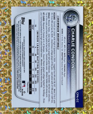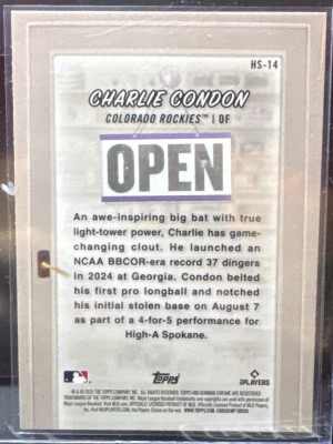 Charlie Condon- 2025 Bowman Chrome #HS-14 Condons Colorado Card Cave Rookie (RC)