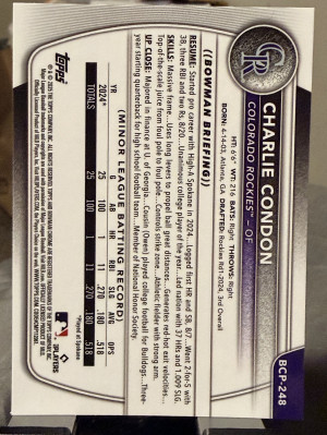 2025 Bowman Chrome Prospects Charlie Condon, #BCP-248 (RC)