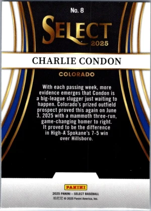 2025 Panini Select #8 Charlie Condon Turbo Charged