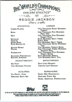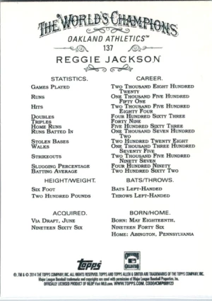 2014 Topps Allen & Ginter #137 Reggie Jackson