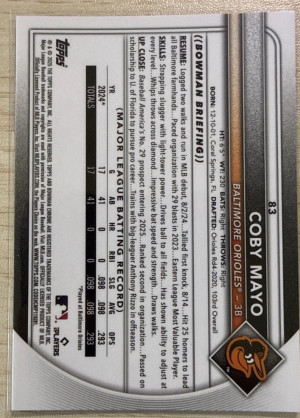 2025 Bowman Chrome Coby Mayo #83 Refractor Red (RC) Baltimore Orioles