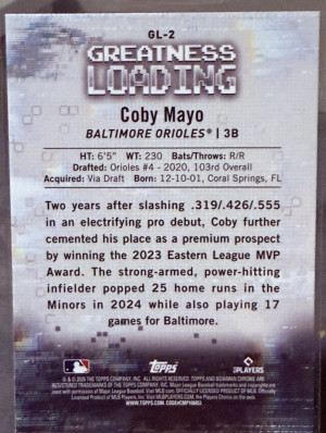 2025 Bowman Chrome Greatness Loading #GL-2 Coby Mayo Baltimore Orioles RC