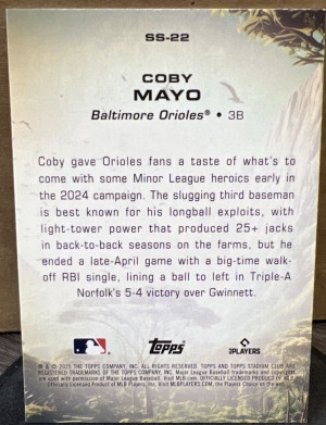 2025 Topps Stadium Club Savage Sluggers SS-22 Coby Mayo Baltimore Orioles (RC)