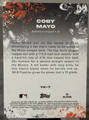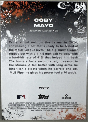 2025 Topps Stadium Club Coby Mayo Yours For The Taking #YK-7 Rookie RC