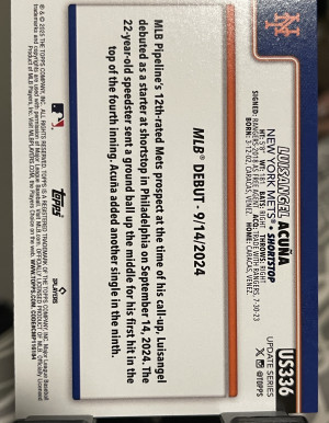 2025 Topps Update Series - Rookie Debut Luisangel Acuna #US336 (RC)