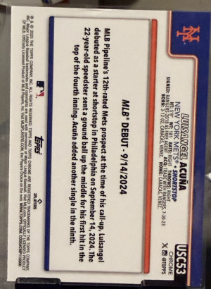 2025 TOPPS CHROME UPDATE ROOKIE DEBUT AUTOGRAPHS LA LUISANGEL ACUNA MINI DIAMOND REFRACTOR