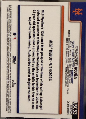 2025 Topps Chrome Update Series - Rookie Debut Luisangel Acuna #USC53 (RC)