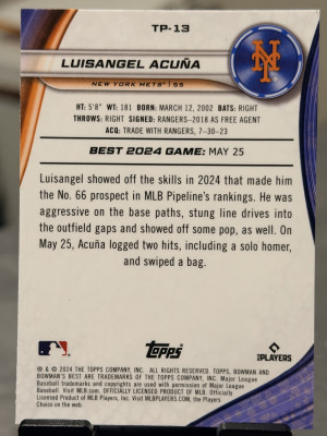 2024 Bowman's Best - TopProspects Luisangel Acuna #TP-13 PurpleRefractor /250 (RC)