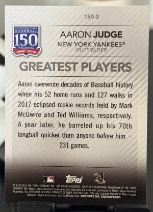 2019 Topps Update Aaron Judge 150 Years Greatest Players 150-3 Yankees
