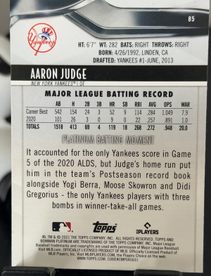 2021 Bowman Platinum Aaron Judge #85 New York Yankees