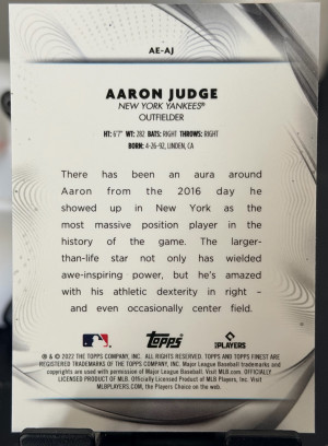 2022 Topps Finest - Aura Of Excellence Aaron Judge #AE-AJ