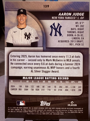 2025 Topps Stadium #139 Aaron Judge New York Yankees